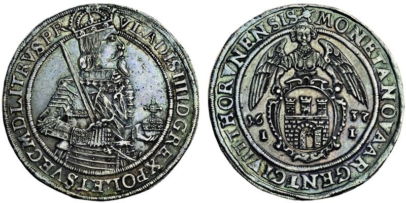 Poland, Thorn, Wladislaw IV (1632-48), Taler, 1637 II, king, crowned and armoured, right holding sword and orb, rev. angel facing holding city arms dividing date (KM.21; Dav.4374; Gum.1611), toned, pleasing, good very fine