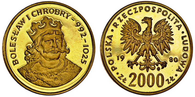 Poland, proof 2000-Zlotych, 1980, eagle, rev. King Boleslaw I (F.125; KM.Y116), brilliant uncirculated