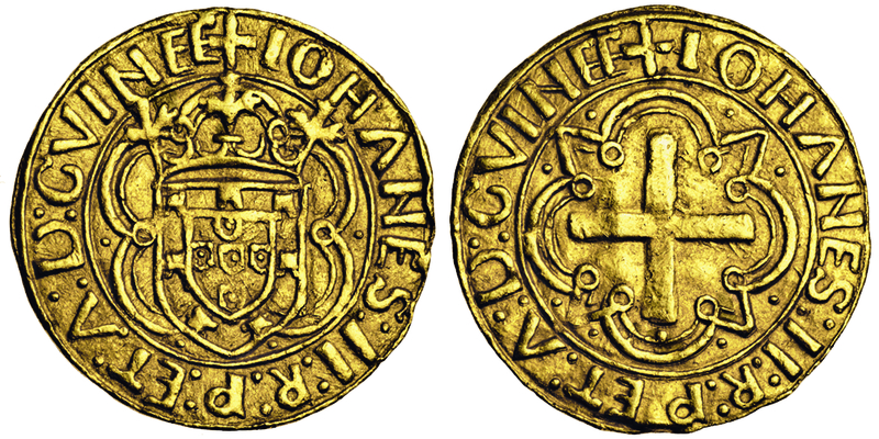 Portugal, Joao II (1481-95), Cruzado, 3.50g, Lisbon, crowned shield, rev. plain cross within quadrilobe (F.19; Gomes 21.07), very fine