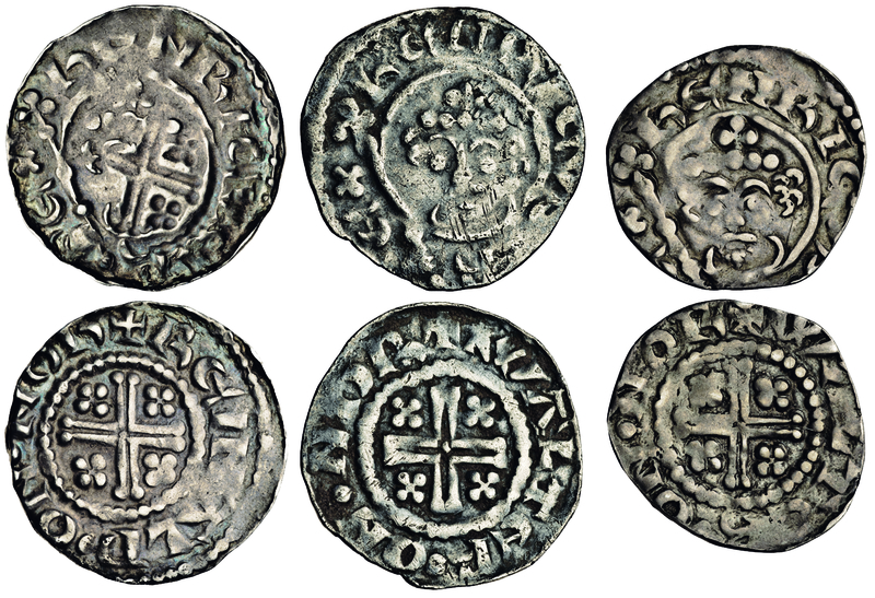 Henry II, short cross coinage, 1180-89, Pennies (4), Northampton, 1c (3), 1.37g, 1.21g, 1.42g, Walter, +walter.on.nor, (N.963; S.1344), fine - good fine, 1.44g, reverse brockage, Reinald, +reinald.on.nor, good fine (4)