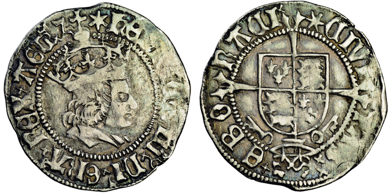 Henry VIII, first coinage 1509-26, Halfgroat, 1.29g, York, Archbishop Thomas Wolsey, m.m. star, crowned bust right, rev. civitas eboraci, shield over long cross fourchée, keys in field below, Cardinal's hat beneath (N.1771; S.2326), nearly very fine