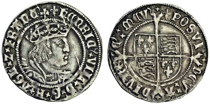 Henry VIII, second coinage, 1526-44, Groat, 2.72g, m.m. lis, Laker D, crowned bust right, franc, rev. shield over long cross fourchée (N.1797; S.2337E), minor metal flaw in field by chin, even old tone, good very fine