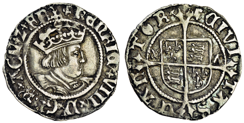 Henry VIII, second coinage, 1526-44, Halfgroat, 1.29g, Canterbury, Archbishop Warham, m.m. uncertain mark, crowned bust right, rev. shield over long cross fourchée, w a at sides (N.1802; S.2343), nearly very fine