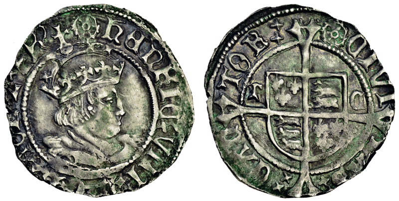 Henry VIII, second coinage, 1526-44, Halfgroat, 1.33g, Canterbury, Archbishop Cranmer, m.m. catherine wheel, crowned bust right, rev. shield over long cross fourchée, t c at sides (N.1810; S.2345), good very fine