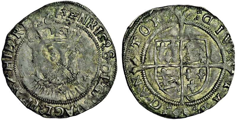 Henry VIII, third coinage, 1544-47, Groat, 2.83g, Canterbury, m.m. none, roman letters, bearded, crowned facing bust half right, bust 2, rev. civitas cantor shield over long cross fourchée, spur linking shield and inner circle (N.1847; S.2373), very fine