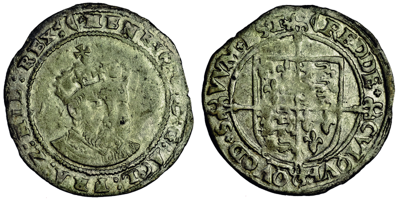 Edward VI, coinage in the name of Henry VIII, 1547-51, Groat, 2.27g, Durham House, m.m. bow, roman lettering, bearded, crowned facing bust, bust 6, lozenge stops, rev. redde cviqve qvod svvm est, shield over long cross fourchée, cross stops (N.1873; S.2405), nearly very fine, very rare