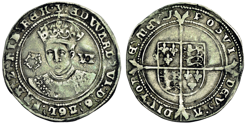Edward VI, fine coinage, 1551-53, Sixpence, 3.00g, London, m.m. y, crowned facing bust half left, rev. shield over long cross fourchée (N.1938; S.2483), slight crease, nearly very fine