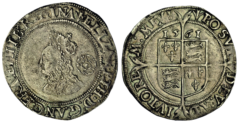 Elizabeth I, third and fourth issues, 1561-77, Sixpence, 3.12g, 1561, m.m. pheon, crowned bust left, bust 1F, rev. shield over long cross fourchée (N.1997; S.2560), almost very fine