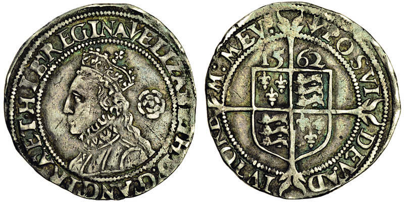 Elizabeth I, third and fourth issues, 1561-77, Threepence, 1.38g, 1562, m.m. pheon, crowned bust left, rev. shield over long cross fourchée (N.2000; S.2565), some light marks, very fine