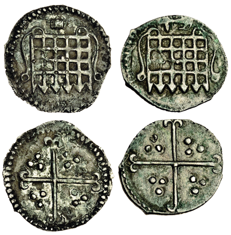 Elizabeth I, sixth issue, 1582-1600, Halfpenny (2), 0.21g, m.m. tun, portcullis, rev. cross and pellets (N.2018; S.2581), very fine, 0.24g, m.m. anchor, similar, almost very fine (2)