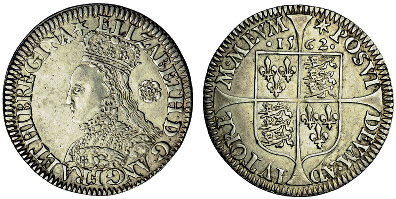 Elizabeth I, milled coinage, 1560-71, Sixpence, 2.98g, 1562, m.m. star, crowned large broad bust with elaborate dress left, rev. shield over long cross pattée (Borden and Brown 29 O4/R2; N.2028; S.2597), cleaned, very fine