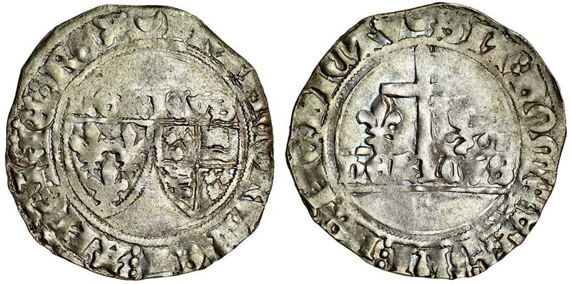 Henry VI, Grand Blanc aux Écus, 3.25g, Châlons, m.m. crescent, shields of France and England, rev. cross dividing lis and leopard, hericvs below (Elias 282), fine, very rare