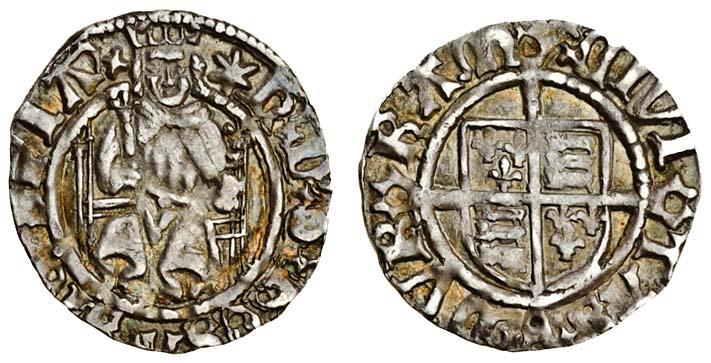 Henry VIII, second coinage, 1526-44, Penny, 0.63g, Sovereign type, Durham, sede vacante. m.m. star/-, king enthroned, crowned and holding sceptre and orb, rev. civitas dvrram, shield over long cross fourchée (N.1812; S.2353), toned, attractive example, good very fine