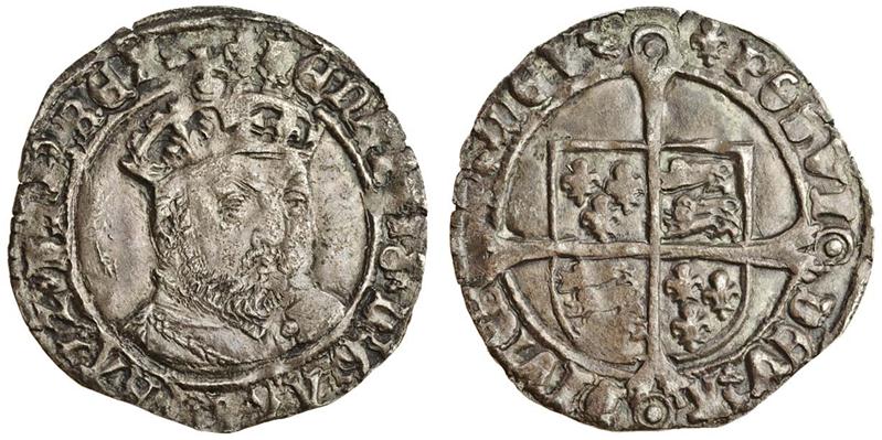 Henry VIII, third coinage, 1544-47, Groat, 2.44g, Tower, m.m. lis, lombardic lettering, crowned, bearded bust half right, bust 3, rev. shield over long cross fourchée, pellet in annulet in forks (N.1844; S.2369), a good example, very fine
