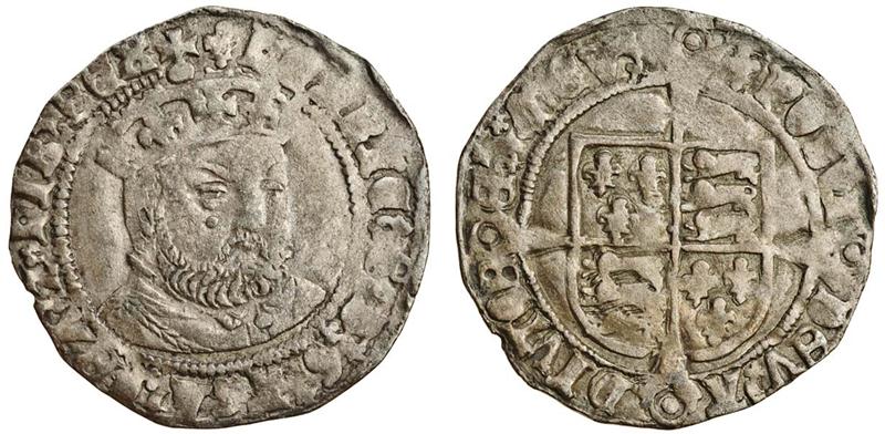 Henry VIII, third coinage, 1544-47, Groat, 2.46g, Tower, m.m. lis, crowned, bearded bust half right, bust 3, rev. shield over long cross fourchée, pellets in annulet in forks (N.1844; S.2369), nearly very fine