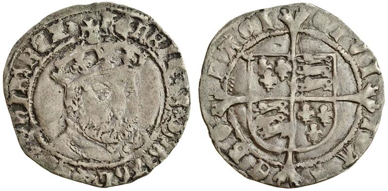 Henry VIII, third coinage, 1544-47, Groat, 2.41g, York, m.m. none, lombardic lettering, crowned, bearded bust half right, bust 3, rev. civitas eboraci, shield over long cross fourchée, spur to top left of shield (N.1848; S.2374), nearly very fine