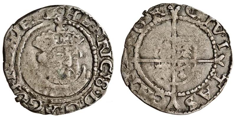 Edward VI, coinage in the name of Henry VIII, 1547-51, Halfgroat, 1.38g, Canterbury, m.m. none, roman lettering, crowned bearded bust half right, rev. civitas cantor, shield over long cross fourchée (N.1881; S.2415), nearly very fine