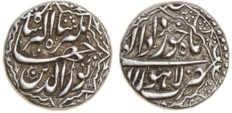 India, Mughal Empire, Jahangir (1605-28), Rupee, Lahore, date off flan, Ilahi month Khurdad (KM.145.11), very fine