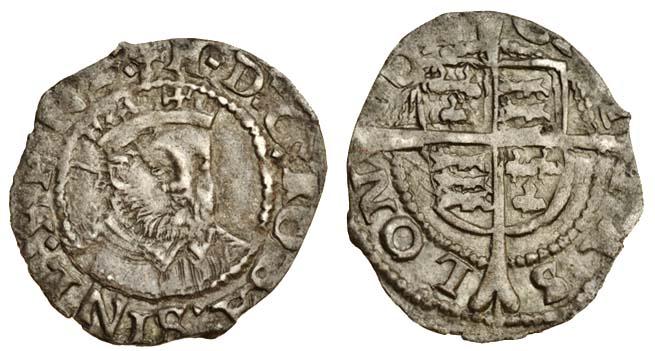 Edward VI, coinage in the name of Henry VIII, 1547-51, Penny, 0.41g, Tower, no m.m., roman lettering, crowned bearded bust half right, rev. civitas london, shield over long cross fourchée (N.1883; S.2418), good detail on bust, an attractive example, very fine