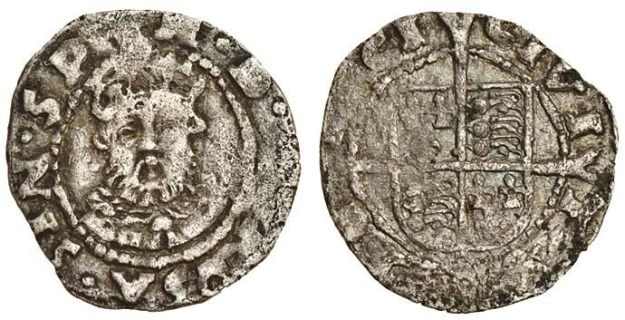 Edward VI, coinage in the name of Henry VIII, 1547-51, Penny, 0.61g, York, no m.m., roman lettering, facing crowned bearded bust, rev. civitas eboraci, shield over long cross fourchée (N.1888; S.2424), lightly porous surfaces, bold bust, nearly very fine / good fine