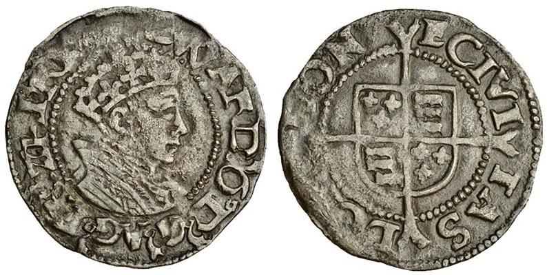 Edward VI, first period, January 1547 - January 1549, Halfgroat, 1.14g, Southwark, m.m. e, rev. civitas london, shield over long cross fourchée (N.1900; S.2458), some weakness in legends, good portrait, about very fine, very rare