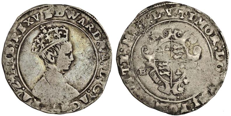 Edward VI, second period, January 1549-April 1550, Shilling, 4.91g, mdl (1550), Southwark, m.m. y, crowned bust right, bust 3, rev. crowned garnished shield dividing e r (N.1919/2; S.2472C), nearly very fine for issue, rare