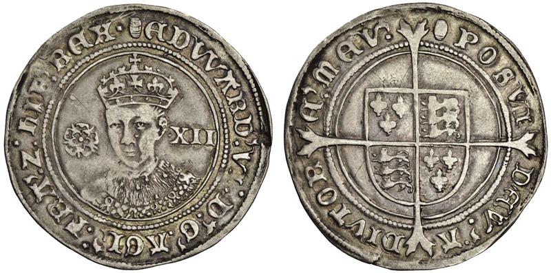 Edward VI, fine issue, 1551-53, Shilling, 5.94g, m.m. tun, crowned bust half left, rev. shield over long cross fourchée (N.1937; S.2482), lightly toned, nearly very fine