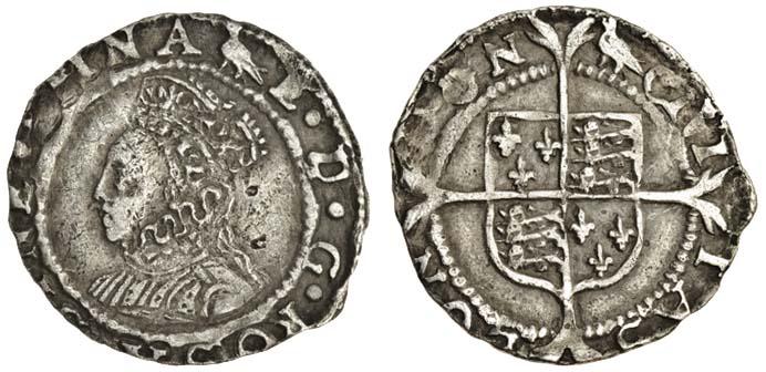 Elizabeth I, second issue, 1560-61, Penny, 0.50g, m.m. martlet, crowned bust left, rev. shield over long cross fourchée (N.1988; S.2558), nearly very fine