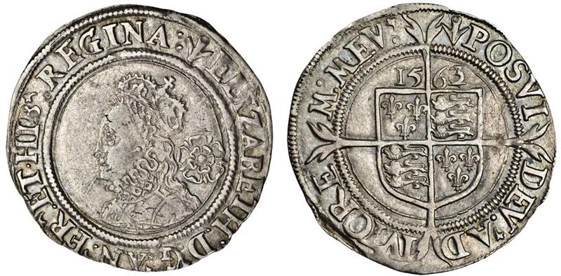 Elizabeth I, third and fourth issues, 1561-77, Sixpence, 2.73g, 1563/2, m.m. pheon, crowned bust left, rev. shield over long cross fourchée (N.1997; S.2561), nearly very fine