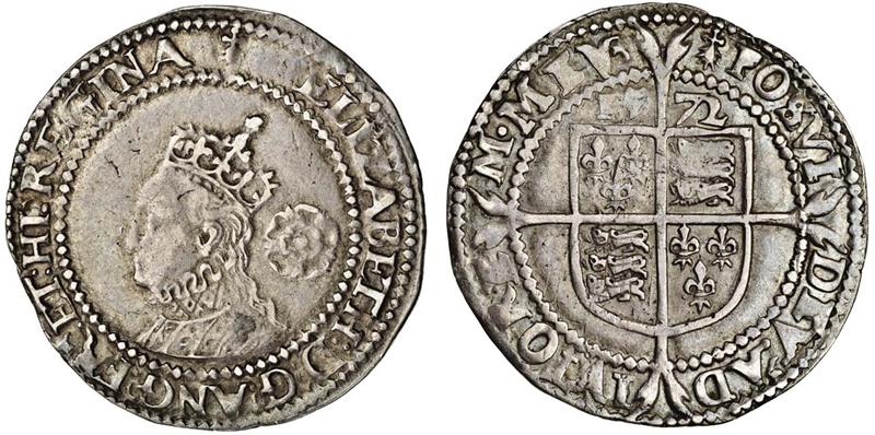Elizabeth I, third and fourth issues, 1561-77, Sixpence, 3.03g, 1572, m.m. ermine, crowned bust left, rev. shield over long cross fourchée (N.1997; S.2562), nearly very fine