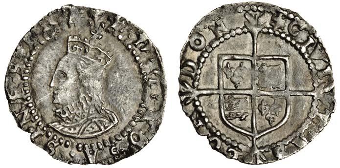 Elizabeth I, fifth issue, 1577-82, Penny, 0.49g, m.m. Latin cross over Greek cross, crowned bust left, rev. shield over long cross fourchée (N.2001; S.2575), very fine