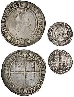 Elizabeth I, sixth issue, 1582-1600 (2), Halfgroat, 0.94g, m.m. escallop, crowned bust left, rev. shield over long cross fourchée (N.2016; S.2579), almost very fine, Shilling, 6.62g, m.m. hand (N.2014; S.2577), fair / about fine (2)