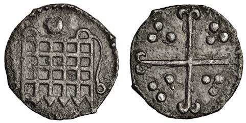 Elizabeth I, sixth issue, 1582-1600, Halfpenny, 0.30g, m.m. crescent, portcullis, rev. cross, pellets in angles (N.2017; S.2581), very fine