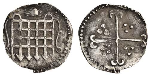 Elizabeth I, sixth issue, 1582-1600, Halfpenny, 0.18g, m.m. hand, portcullis, rev. cross, pellets in angles (N.2017; S.2581), nearly very fine