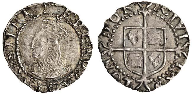 Elizabeth I, seventh issue, 1600-02, Penny, 0.45g, m.m. 2, crowned bust left, rev. shield over long cross fourchée (N.2017; S.2587), lightly toned, about very fine