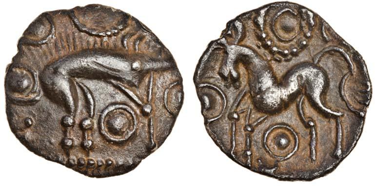 Celtic, Corieltauvi, uninscribed coinage, c.40-10 BC, Silver Unit, 1.28g, boar / horse type, boar right, ring symbols around, rev. horse left, ring pellet before and below, pellet ring above (Mack 410; BMC 3214-17; Rudd ABC 1800. S.397), well-centred with good detail, good very fine