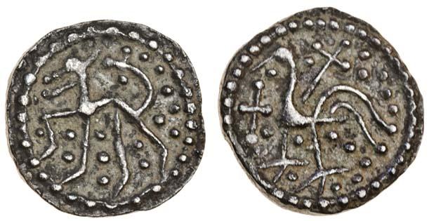 Anglo-Saxon, secondary series, c.710-50, Sceatta, 0.96g, series Q, quadruped, pellets in field, rev. bird left, cross before, long cross above (Abramson Q200; N.62; S.809), an uncleaned field find, well-centred, very fine, rare