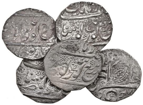 India, Sikh Empire, Rupees (5), Amritsar, fixed year VS1884 / 97 (5)(H. 01.21.04; KM. 21.2), good fine to very fine (5)