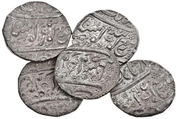 India, Sikh Empire, Rupees (5), Amritsar, fixed year VS1884 / 97 (5)(H. 01.21.04; KM. 21.2), good fine to very fine (5)