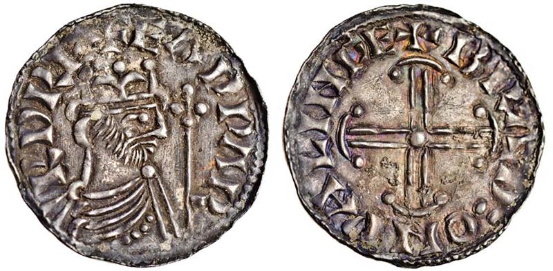 Edward the Confessor, Penny, 1.31g, hammer cross type, Wallingford, Brand, bearded crowned bust left, sceptre before, rev. +brad: on þelinge., voided short cross arms terminating in a section of a circle (N.828; S.1182), toned, good very fine, rare mint for this type