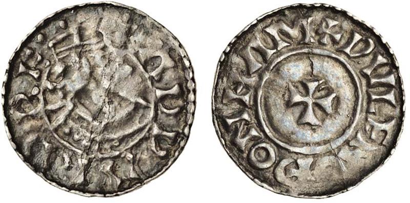 Edward the Confessor, Penny, 1.07g, facing bust and small cross type, Northampton, Wulfnoth, bearded, crowned facing bust, rev. +þvlfnoÐ on ham, small cross pattée (N.830; S.1183), minor flan crack, fine / nearly very fine, extremely rare for this mint