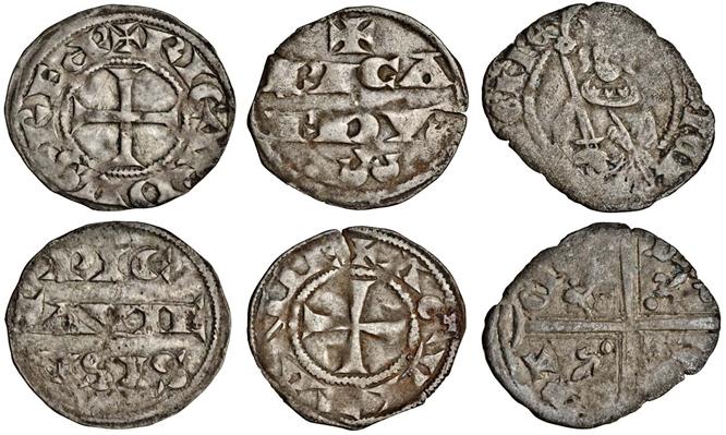 Richard I, Anglo-Gallic, Deniers (2), Aquitaine, 0.97g, rica / rdvs in two lines, rev. cross pattée, (Elias 4), fine Poitou, 0.72g, cross pattée, +ricardvs rex, rev. pic / tavie / ensis in three lines (Elias 8), good fine, Henry VI, Anglo-Gallic, Hardi d'Argent, 0.84g (Elias 233), irregular flan, about fine (3)