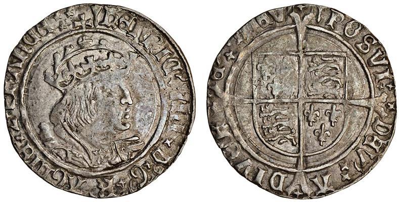 Henry VIII, second coinage, 1526-44, Groat, 2.64g, m.m. arrow, crowned bust right, Laker D, rev. shield over long cross fourchée (N.1797; S.2337D), good fine