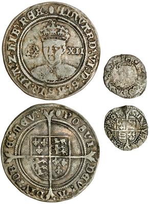 Edward VI (1547-53) (2), coinage in the name of Henry VIII, 1547-51, Penny, 0.54g, Tower, facing, bearded and crowned bust, rev. shield over long cross fourchée (N.1883; S.2417), good fine, coinage in own name, fine issue, 1551-53, Shilling, m.m. tun, crowned facing bust, rev. shield over long cross fourchée (N.1937; S.2482), fine (2)