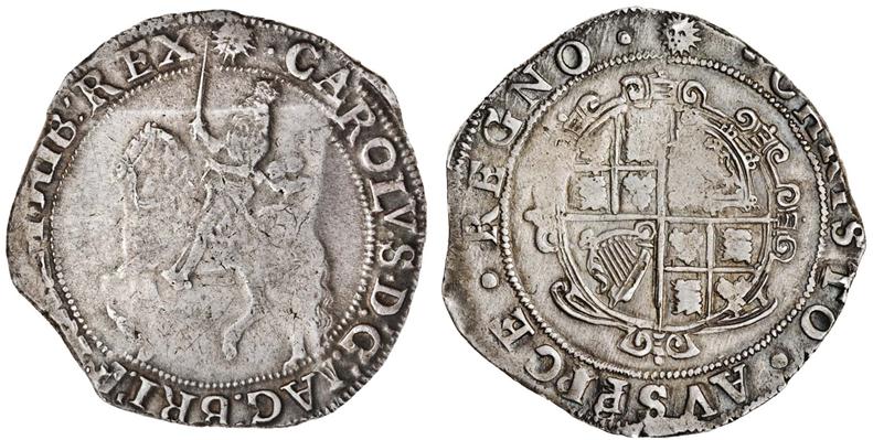 Charles I, Tower under Parliament, Halfcrown, 15.74g, group IV, m.m. sun, king, crowned, riding left, rev. garnished round shield (Brooker 377; N.2215; S.2780), nearly very fine, scarce