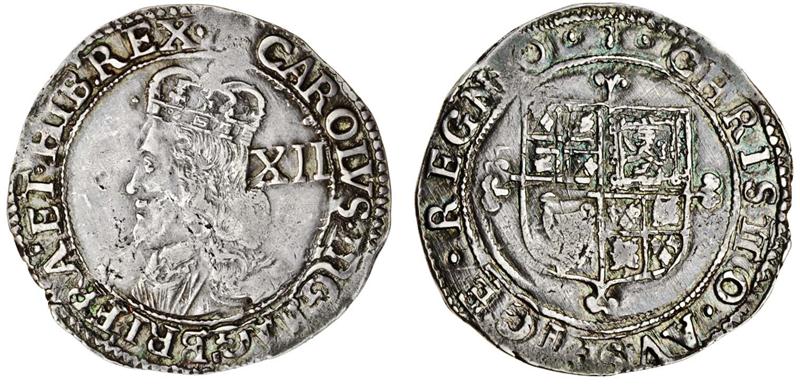 (x) Charles I, Tower mint under Parliament, Shilling, 6.04g, group G, type 4.6.1, m.m. sceptre, crowned short broad bust right, rev. shield over cross moline (Brooker 567; N.2234; S.2804), double struck on reverse, very fine, scarce