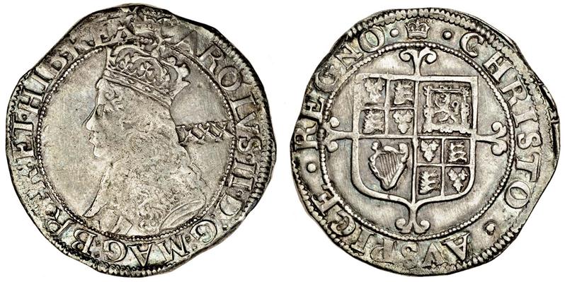 Charles II (1660-85), hammered coinage 1660-62, third issue, Halfcrown, 14.99g, m.m. crown, crowned bust in armour left, wearing falling lace collar, mark of value behind, rev. shield over short cross fleury (ESC 456; N.3309; S.3321), very fine