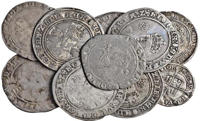 English hammered silver coins, Edward VI (8), Shillings (6), second period (1), m.m. y, mdxlix, fair-fine, third period, very base coinage (1), mdli, m.m. lion, poor - fair, the second rare, fine issue, 1551-53, Shillings (4), all m.m. tun, fair , Sixpence, fair, Threepence, pierced, crimped, good fine, Philip and Mary, Shilling, no date, full titles, fair (9)