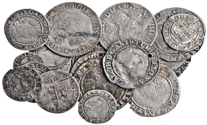 English hammered silver coins, including Elizabeth I (18), Sixpences (6), Groat (1), minor denominations (11), and milled coinage (3), 1561-71, Sixpence (2), Threepence (1), generally fair - about fine, two pierced, Henry VIII, minor denominations (6), generally fair-fine, one pierced, one plugged (27)