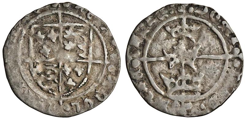 Henry VII (1485-1509), Groat 1.95g, early three crowns issue, Dublin, shield over long cross with pellet terminals, rex anglie francie, rev. three crowns over long cross with pellet terminals, dominvs hybernie (D.F.183; S.6419), about fine, scarce